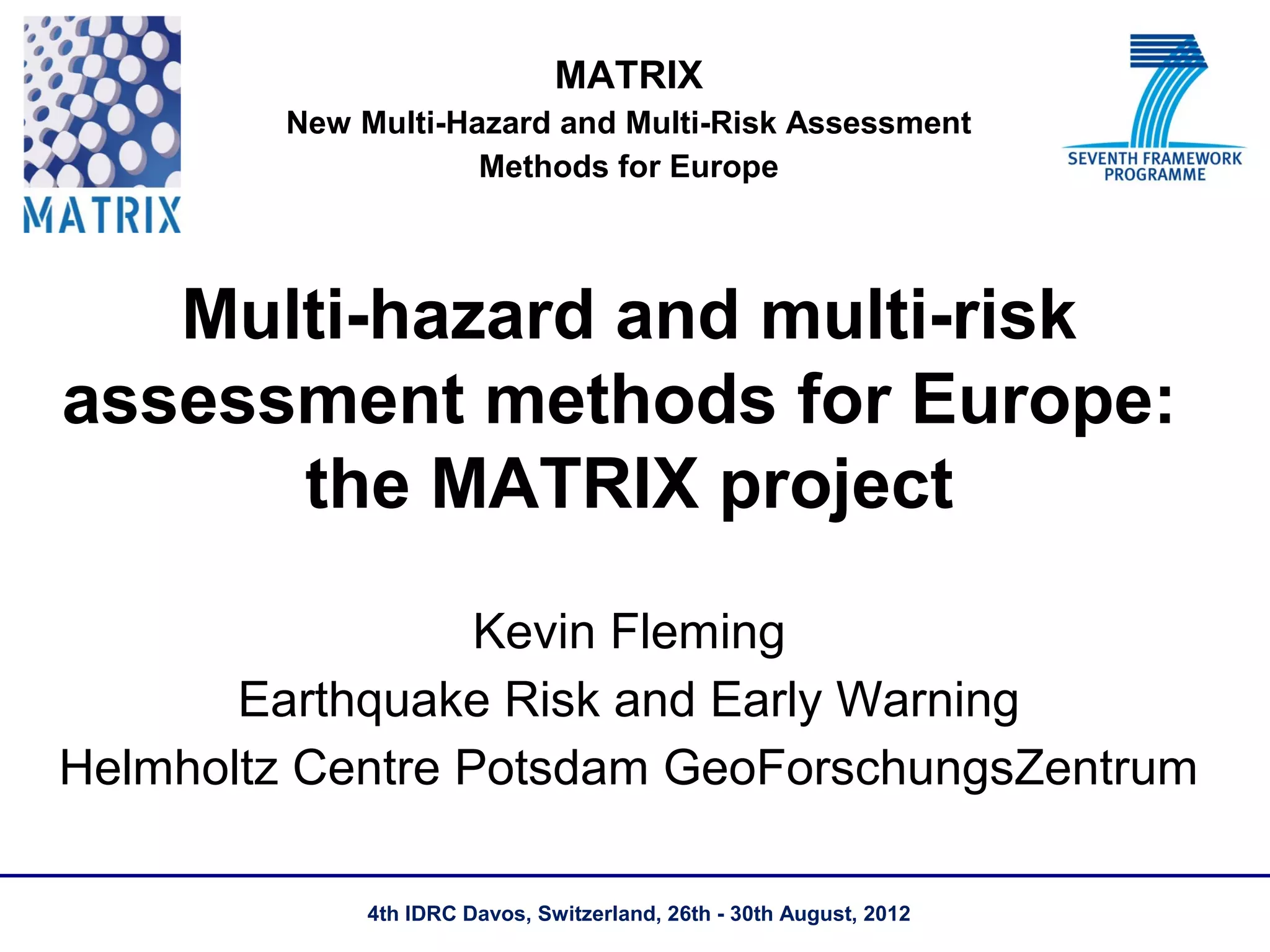 The MATRIX project aims to develop new methods for multi-hazard and multi-risk assessment in Europe. It will consider how different natural hazards interact and influence vulnerability over time. The project will compare new multi-hazard methods to existing single-hazard analyses. Three test cities will be used: Naples, the French West Indies, and Cologne. Cascade scenarios will be modeled, such as earthquakes damaging dykes and increasing flood risk in Cologne. The project seeks to provide more cost-effective risk reduction strategies by taking a multi-hazard approach to decision making.