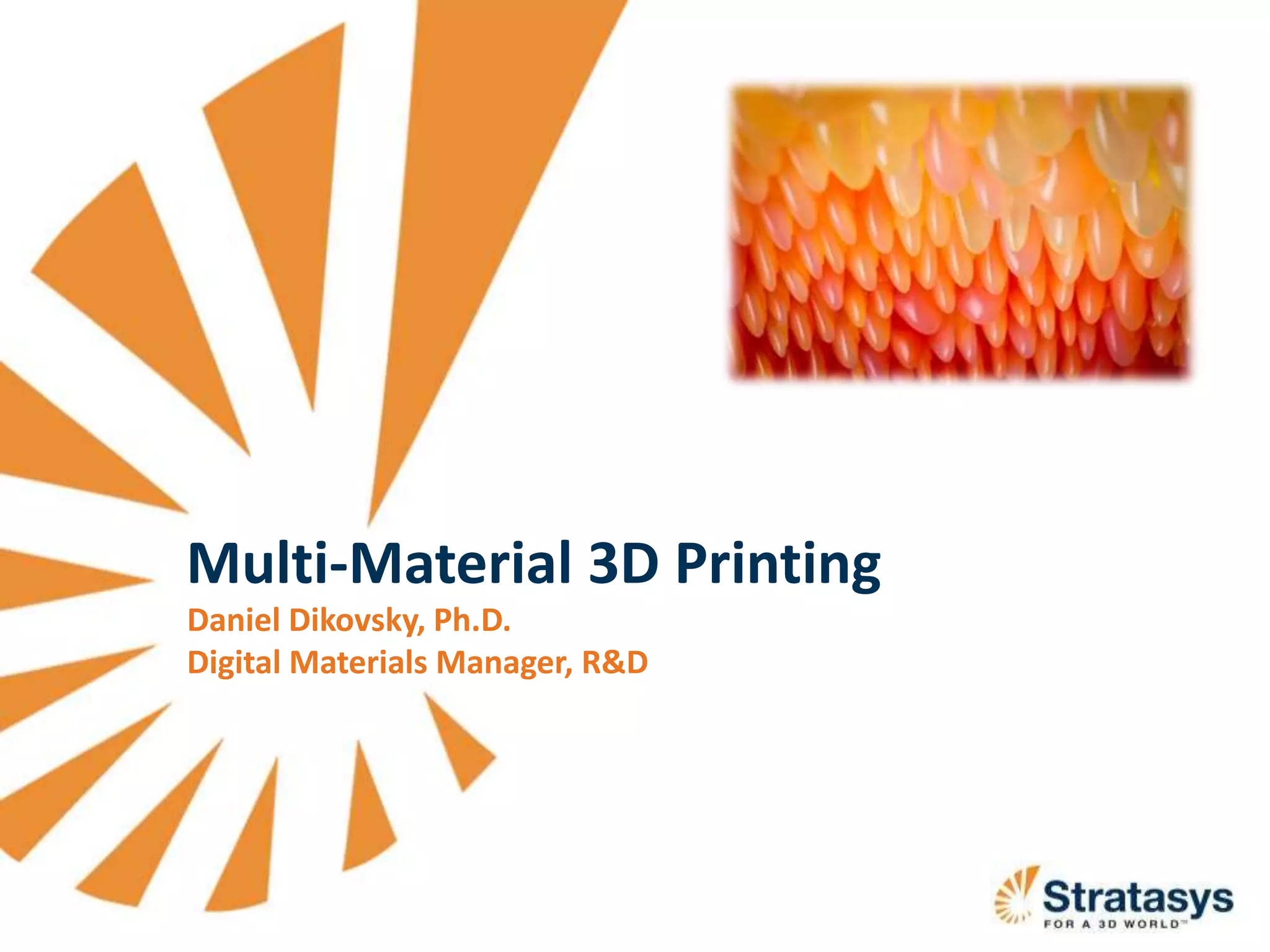 The document presents an overview of multi-material 3D printing technology, detailing various processes and material properties involved, such as the PolyJet and Connex methods. It discusses the concept of digital materials, which are engineered from multiple constituents based on digitally encoded designs, and their applications in creating complex objects. Additionally, the document highlights innovative applications like 4D printing and advanced simulation techniques for material behavior.