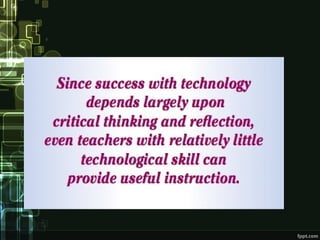 This document discusses the educational benefits of using multimedia tools in teaching. It provides 10 reasons for using technology in teaching, such as students enjoying it, improving test scores, and helping students with low attention spans. It also discusses key concepts like digital natives, who grew up with digital technology, digital immigrants, who learned digital technology later in life, and screenagers to describe wired teens. The document emphasizes that multimedia tools engage students, provide valuable learning opportunities, and empower students to create rather than just absorb information.