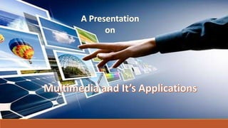 Multimedia combines multiple forms of media like text, audio, images, video, and animation. It has been used commercially and for entertainment since the 1960s. Key elements include text, audio, images, video, animation, and hypermedia. Multimedia is applied in various fields like education, journalism, engineering, industry, communication, and medicine for training, presentations, and interactive experiences. It allows information to be presented dynamically and engages users with its multiple media forms.