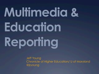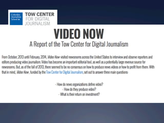 The document discusses recommendations for using video in news reporting. It suggests that news organizations have two video teams - one for short, unpolished videos shared on social media from the field, and one for more sophisticated, in-depth videos. It also provides guidance on when video is appropriate - for visual/action-based stories, stories that evoke emotion or involve people talking about emotional issues, or topics that are difficult to explain without visuals. Videos should have a clear focus and not try to tell an entire print story, as short videos are best. The document ends with asking about the potential role of multimedia at Al Fanar.