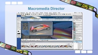 The document outlines various multimedia file formats and details how digital images are represented as matrices of numeric values, based on pixel intensity. It discusses different image formats like 1-bit monochrome, 8-bit grayscale, and 24-bit color images, along with storage requirements and color quantization methods. Additionally, it highlights the use of dithering for printing and covers several file formats, including GIF, JPEG, PNG, TIFF, and animation formats like FLC and FLI.