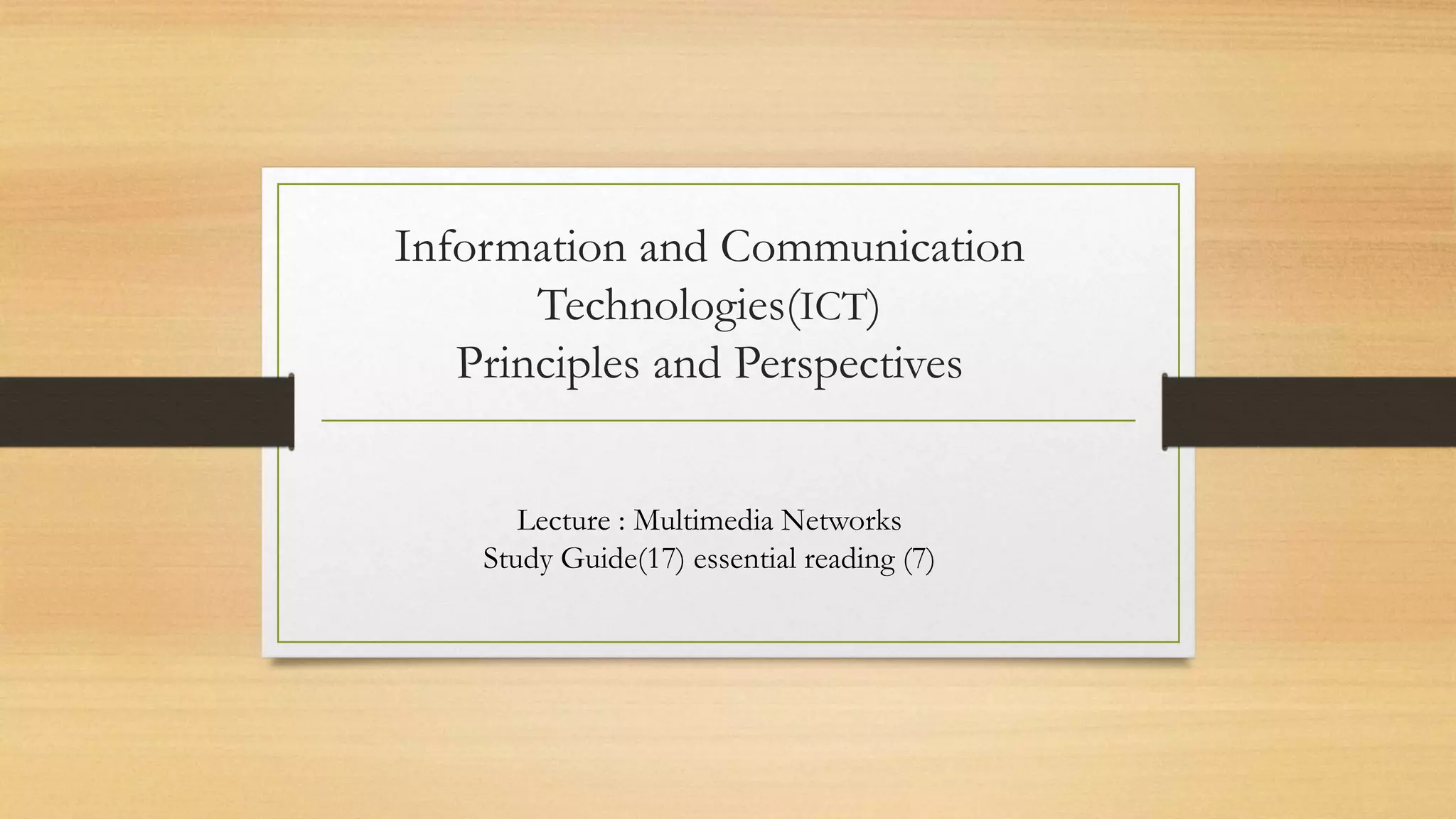This document discusses multimedia networks and properties of video and audio. It covers three types of multimedia network applications: