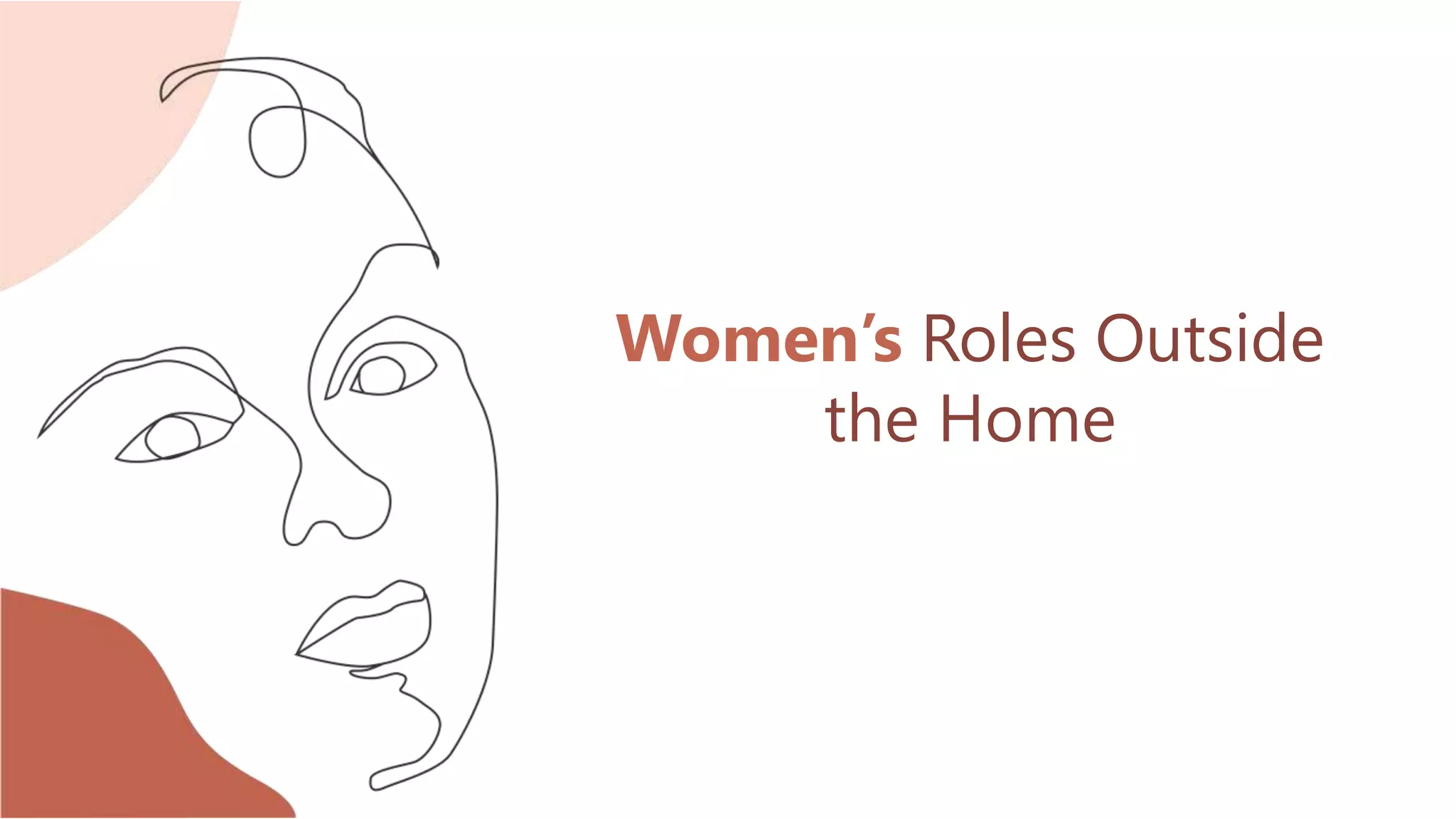The presentation explored the history of attitudes toward women's roles outside the home and how they have changed over time. It discussed how women's roles have varied in different historical periods and were often limited to the domestic sphere. In the late 19th/early 20th century, women began fighting for rights like voting and working outside the home. The feminist movement of the 1960s-70s further challenged traditional gender roles. Currently, though women make up half the workforce, they still face challenges like a gender pay gap, lack of leadership roles, and workplace harassment. The presentation examined how societal, political, and cultural factors have influenced perceptions of women's roles.