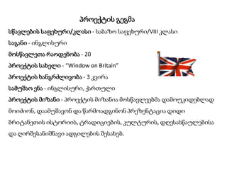 პროექტის შინაარსს, უჩვენებს ვიდეოს დიდი ბრიტანეთის შესახებ ,