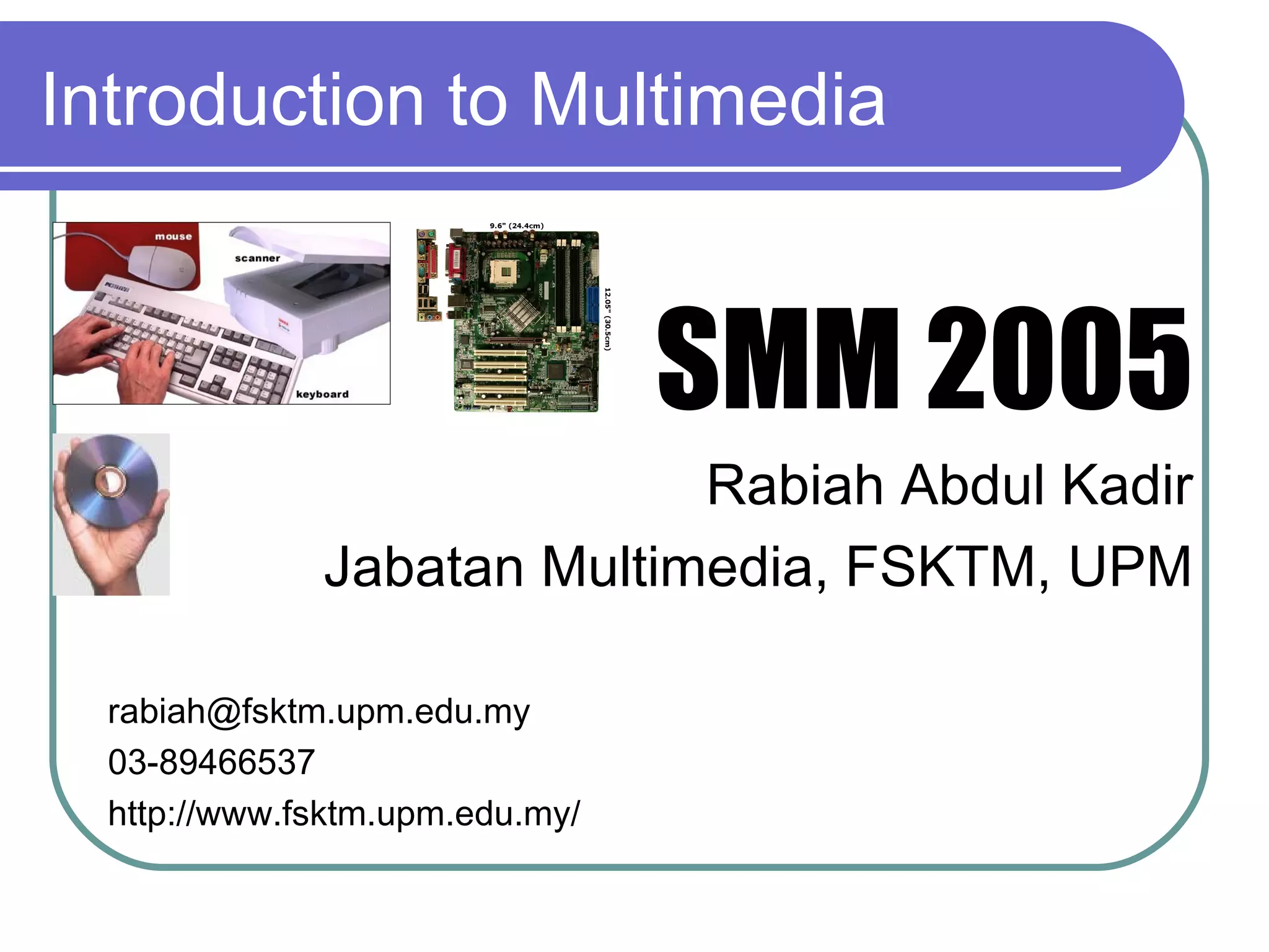The document provides an introduction to computer hardware and software components. It discusses the major components of a computer system including the central processing unit, memory, storage devices, input/output ports, buses, and communication devices. It provides examples of random access memory, read-only memory, and cache memory. It also distinguishes between system software and application software.