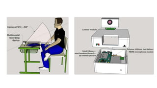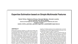 This document discusses multimodal learning analytics (MLA), which examines learning through multiple modalities like video, audio, digital pens, etc. It provides examples of extracting features from these modalities to analyze problem-solving sessions. Video features like total movement, distance from table, and calculator tracking are described. Audio features like speech duration and word counts are mentioned. Digital pen features like strokes, pressure, and shapes are examined. The document concludes that MLA has much potential to explore learning in more realistic settings compared to traditional learning analytics.
