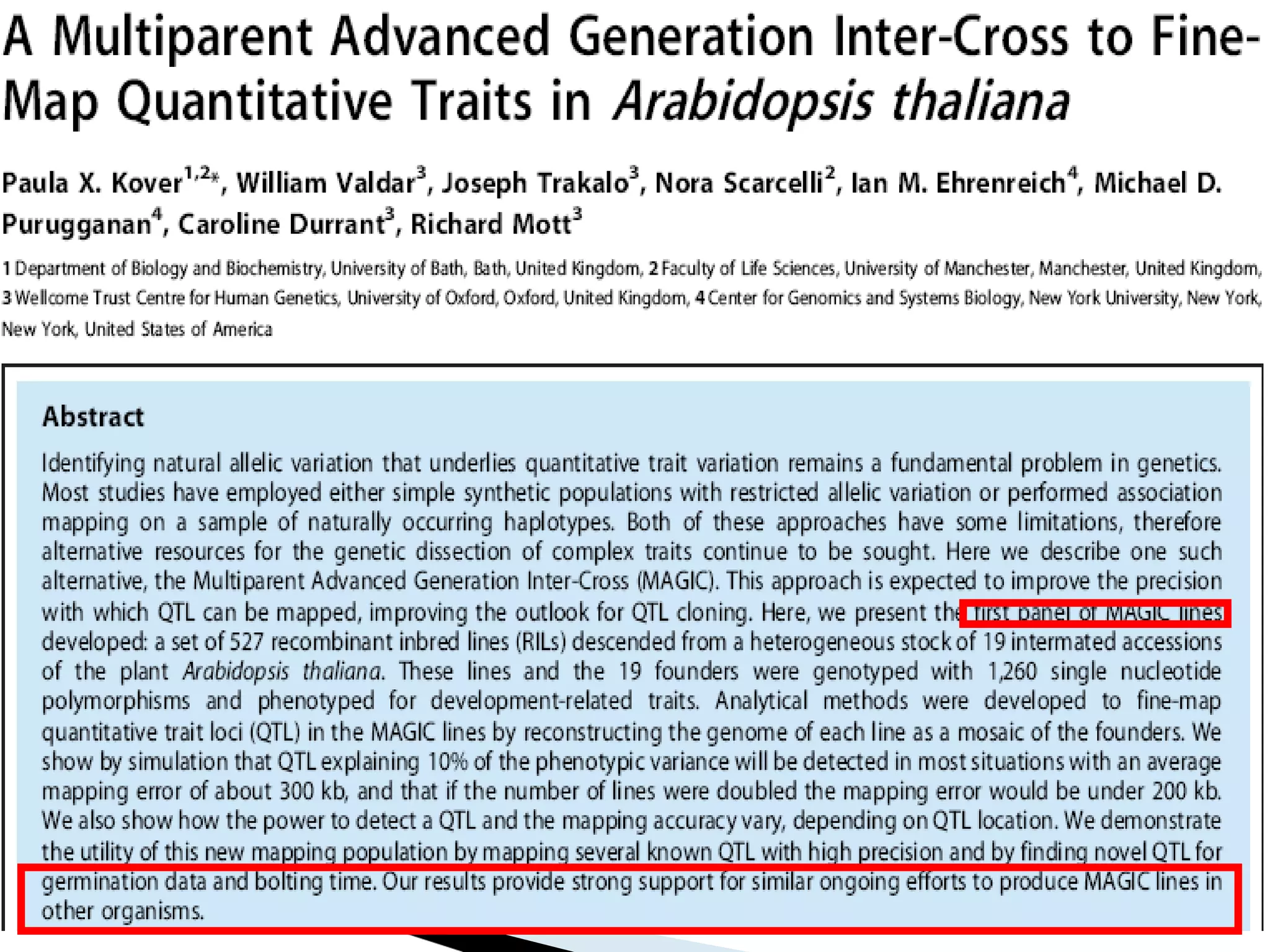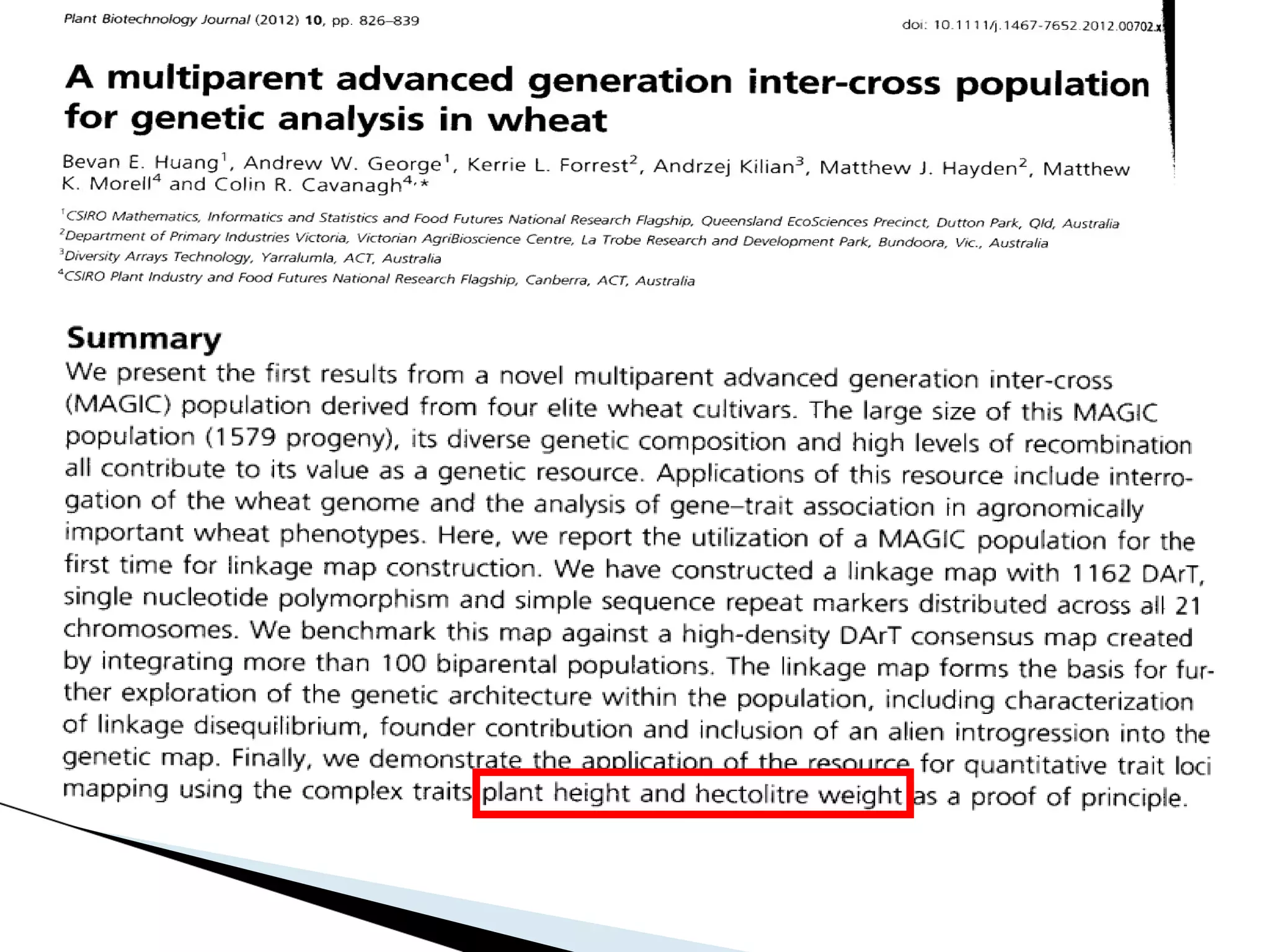 The document discusses the advantages and challenges of using multiparent advanced generation intercross (MAGIC) populations for genetic research in crops, particularly in quantitative trait loci (QTL) mapping. MAGIC populations enhance genetic diversity and facilitate more accurate QTL detection due to increased recombination, though they require significant resources and time. The ongoing research aims to improve understanding and application of these methods for crop trait improvement.