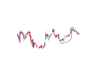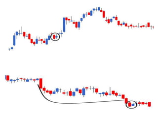 The document discusses various candlestick patterns used in technical analysis: