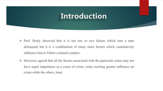 This document discusses several factors that can influence criminal behavior according to different criminological theories:
