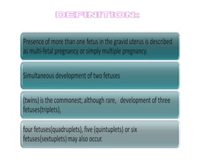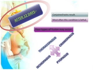 Superfecundation and superfetation describe two different mechanisms by which twins can be conceived. Superfecundation occurs when two different eggs are fertilized from separate acts of intercourse close together. Superfetation is the fertilization of eggs released in different menstrual cycles. In some cases of twin pregnancies, if one fetus dies early on, it can become compressed and flattened between membranes in a state called a foetus papyraceus or compressus. Sometimes known as "vanishing twins", serial ultrasounds may reveal the early death of one twin with the pregnancy continuing successfully with the surviving twin.