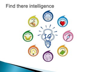 This document discusses Howard Gardner's theory of multiple intelligences. It proposes that there are at least eight different types of intelligence: linguistic, logical-mathematical, spatial, bodily-kinesthetic, musical, interpersonal, intrapersonal, and naturalist. The theory validates that students learn in different ways and have different strengths. By teaching to all the different intelligences, educators can better meet the needs of diverse learners. While some question whether the theory is empirically proven, it has encouraged more creative approaches to education.