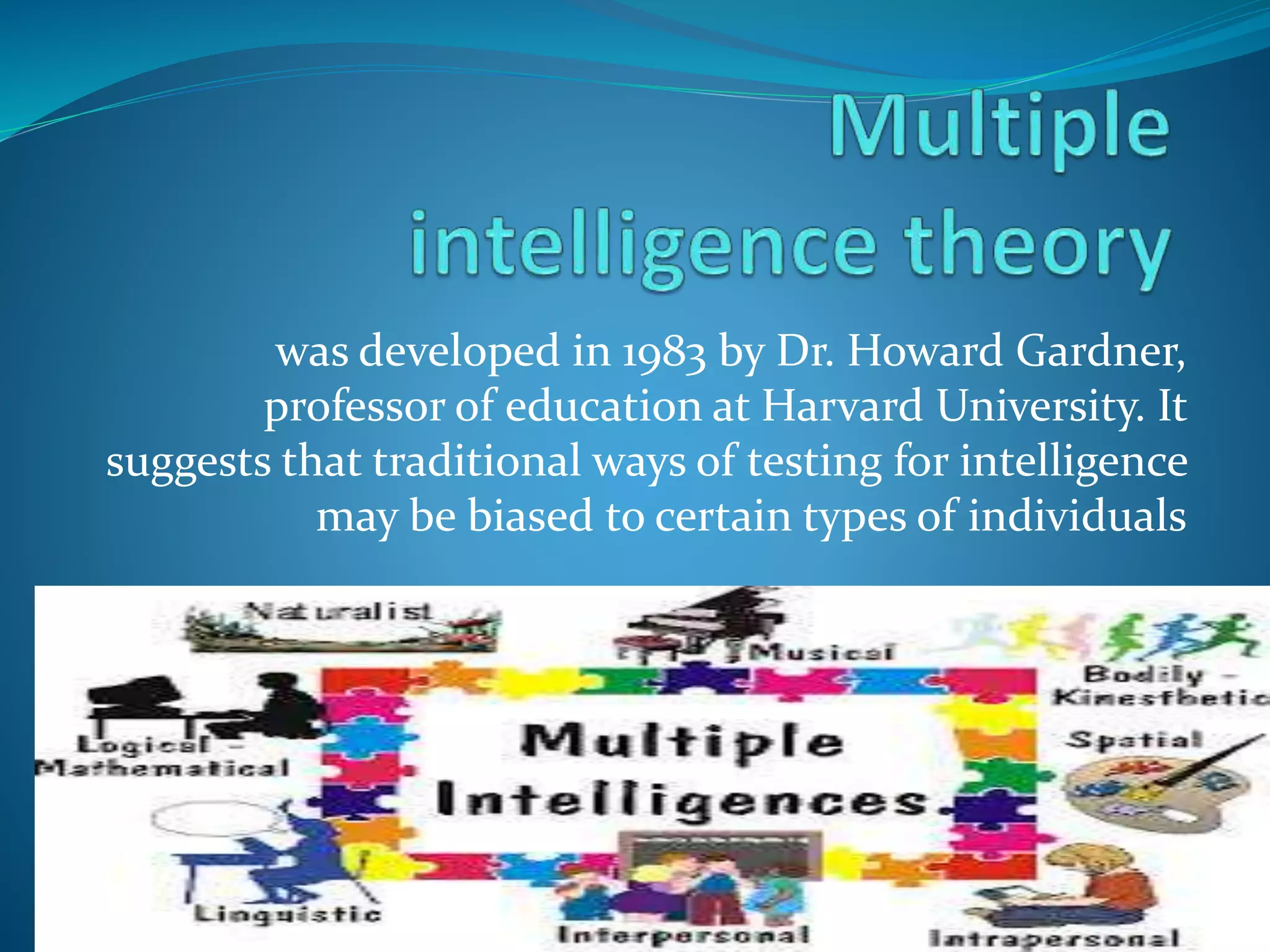 The theory of multiple intelligences was developed by Dr. Howard Gardner in 1983. It suggests that traditional methods of measuring intelligence, such as IQ tests, may be biased toward certain types of individuals and fail to account for the full range of human intelligence. The theory identifies eight different types of intelligence that capture a broader range of human cognitive abilities.