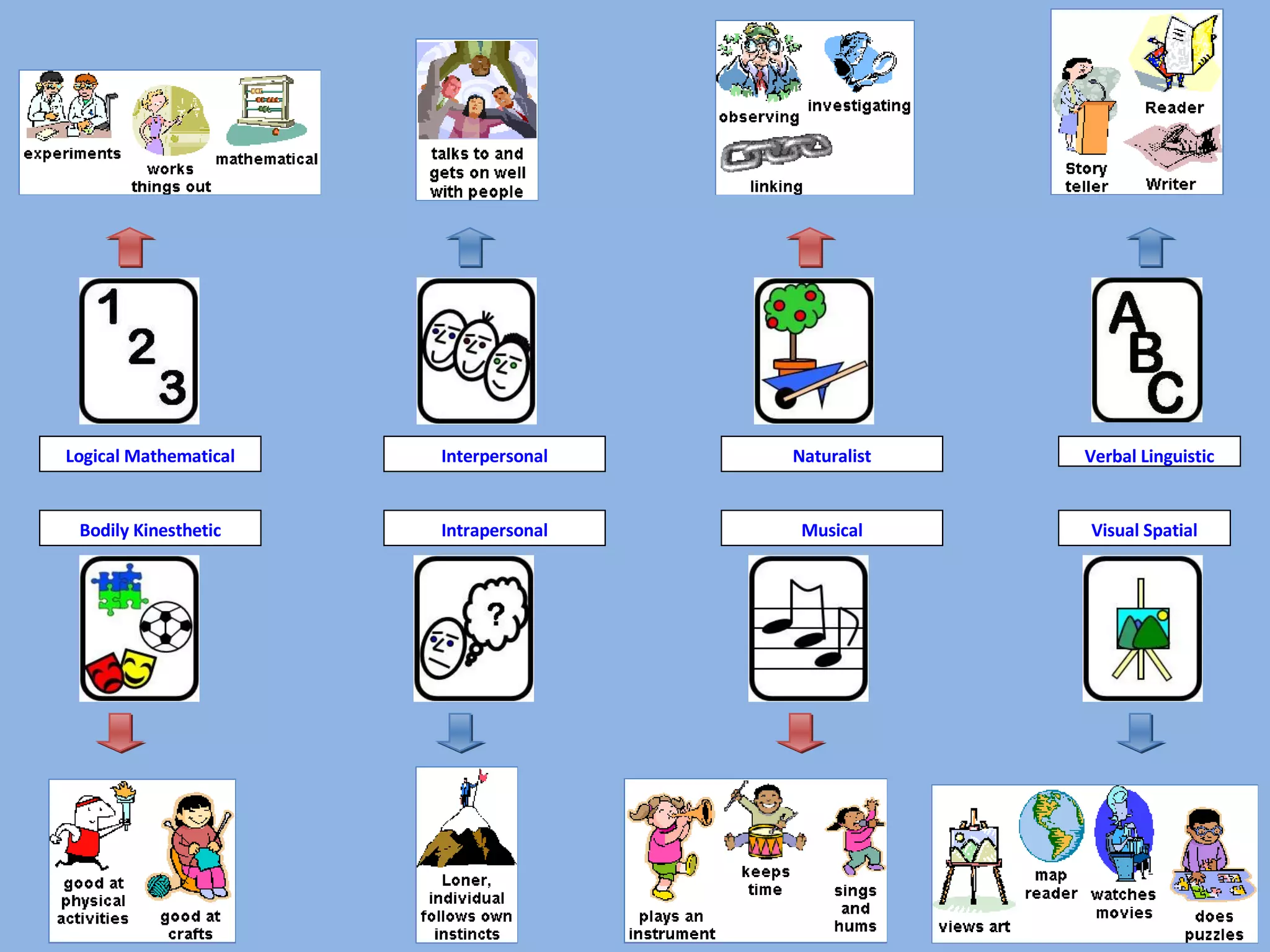 The document lists various tools that can be used to support different types of intelligences and activities for learning including logical-mathematical, interpersonal, intrapersonal, musical, visual-spatial, bodily-kinesthetic, naturalist, verbal-linguistic intelligences. It provides examples of software, websites and applications that allow students to create presentations, videos, music, books, surveys and more to demonstrate their understanding in multiple ways.