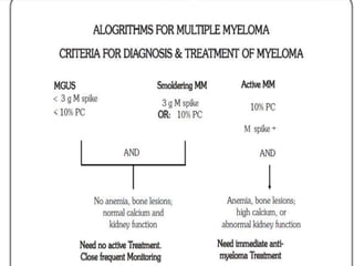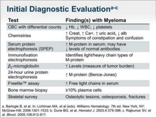 A 55-year-old male presented with new symptoms of exertional fatigue. Bloodwork found low hemoglobin and a serum protein electrophoresis demonstrated a monoclonal IgA protein. A skeletal survey showed lytic bone lesions in the skull and humeri. A bone marrow biopsy showed 30% involvement by abnormal plasma cells positive for CD138. This suggests a diagnosis of multiple myeloma based on the presence of a monoclonal protein, bone lesions, and bone marrow involvement by plasma cells.
