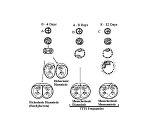 This document presents a PowerPoint presentation on multiple pregnancy by Prativa Dhakal. It defines multiple pregnancy as when more than one fetus develops simultaneously in the uterus. It discusses the different types of twin pregnancies, including dizygotic and monozygotic twins. It also covers the incidence, factors influencing twinning, maternal physiological changes, diagnosis, complications, prognosis, and management of twin pregnancies. Key diagnostic tools include ultrasound and biochemical tests. Major complications discussed are preterm birth and preeclampsia. Management involves careful monitoring, interventions to prevent preterm delivery, and ensuring availability of neonatal care.