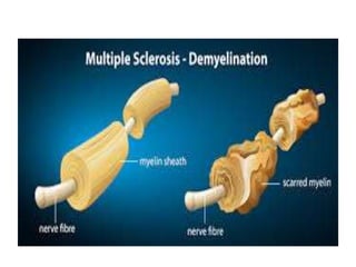 - Multiple sclerosis (MS) is a neurological disease involving damage to the protective myelin sheath surrounding the nerves in the central nervous system. It presents with a variety of symptoms such as vision problems, tingling/numbness, muscle weakness, balance issues, and fatigue.
