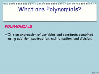 3. The box method, which involves drawing a box and writing one polynomial above and beside the box before distributing the multiplication similar to the distributive property.