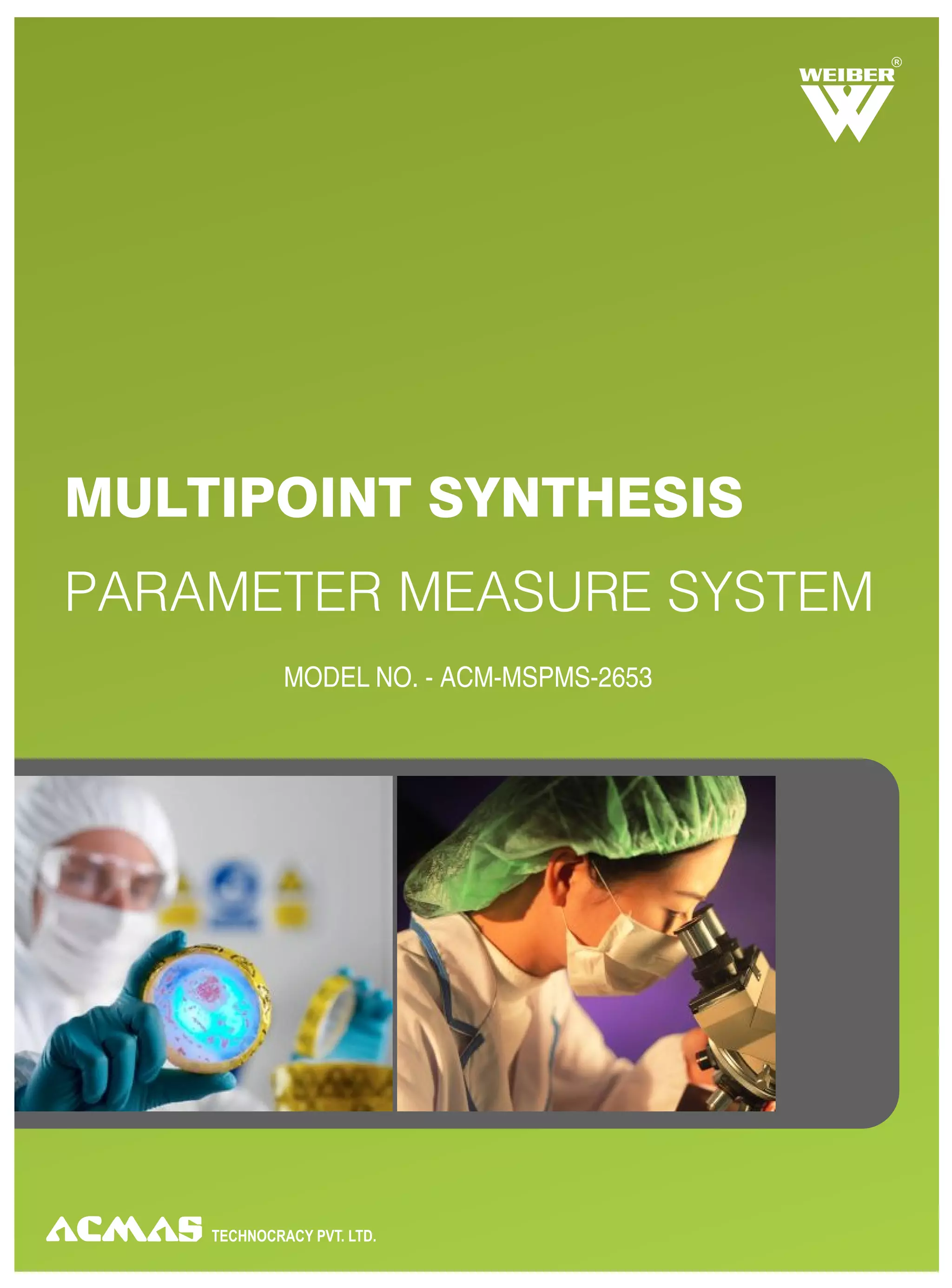 The document describes the Multipoint Synthesis Parameter Measure System, which is designed by Weiber to measure multiple environmental parameters such as temperature, humidity, pressure, wind speed, and gas concentrations. It utilizes centralized data processing and dispersed sampling to provide real-time monitoring. Key features include compact size, high pressure cleaning, measuring cleanliness, and utilizing light scattering theory. It has applications in various industrial and medical fields.