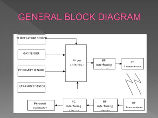 The document discusses the development of a multipurpose robot designed for industrial applications, capable of detecting metals, temperature, gas leaks, and obstacles. It includes various components such as a microcontroller for data processing and wireless transmission for real-time communication with control systems. This robot aims to enhance efficiency, safety, and productivity in processing industries while noting some challenges related to cost and maintenance.