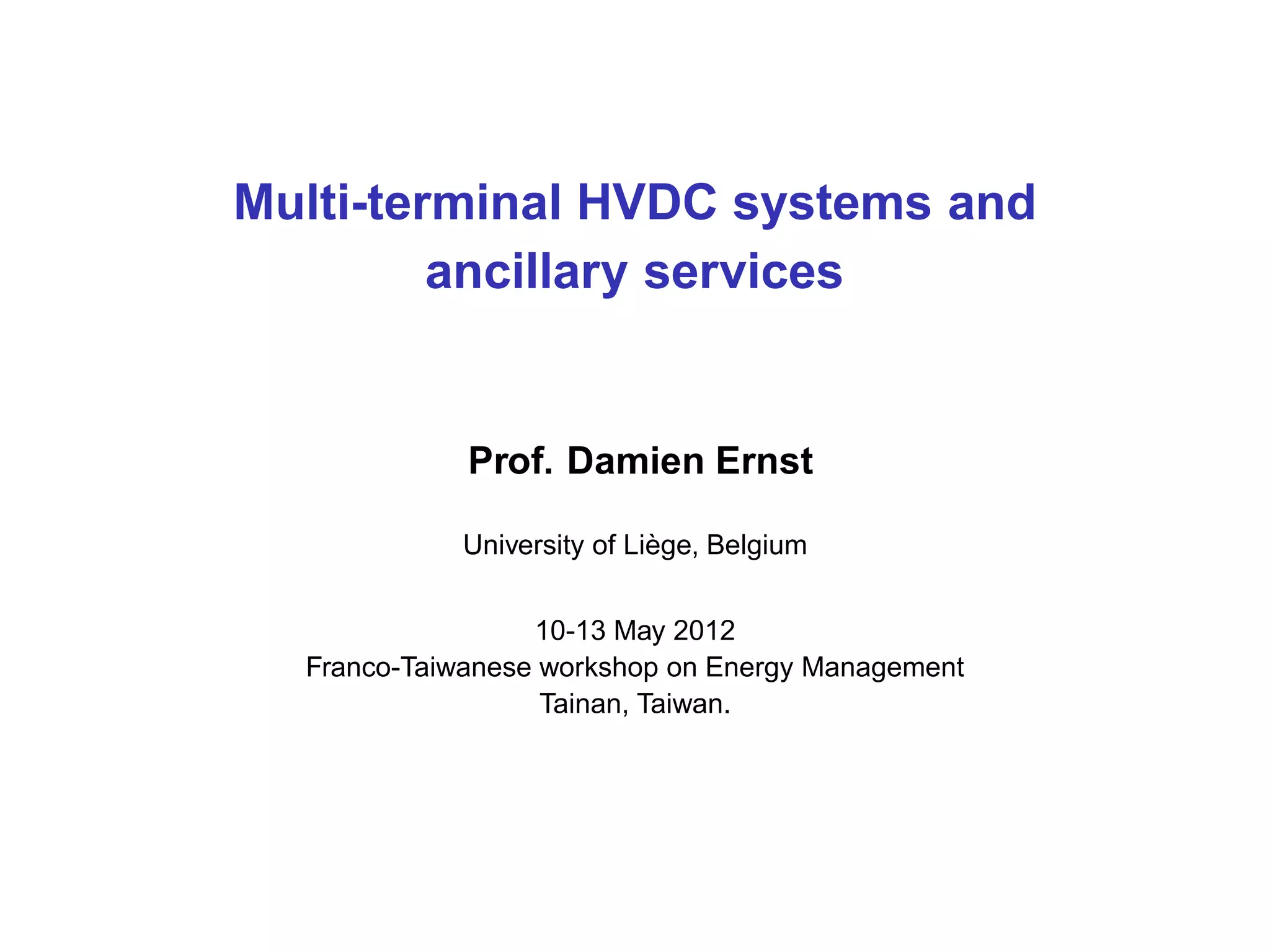 2) The document discusses control schemes for multi-terminal HVDC systems to allow them to provide ancillary services like frequency control to connected AC areas.