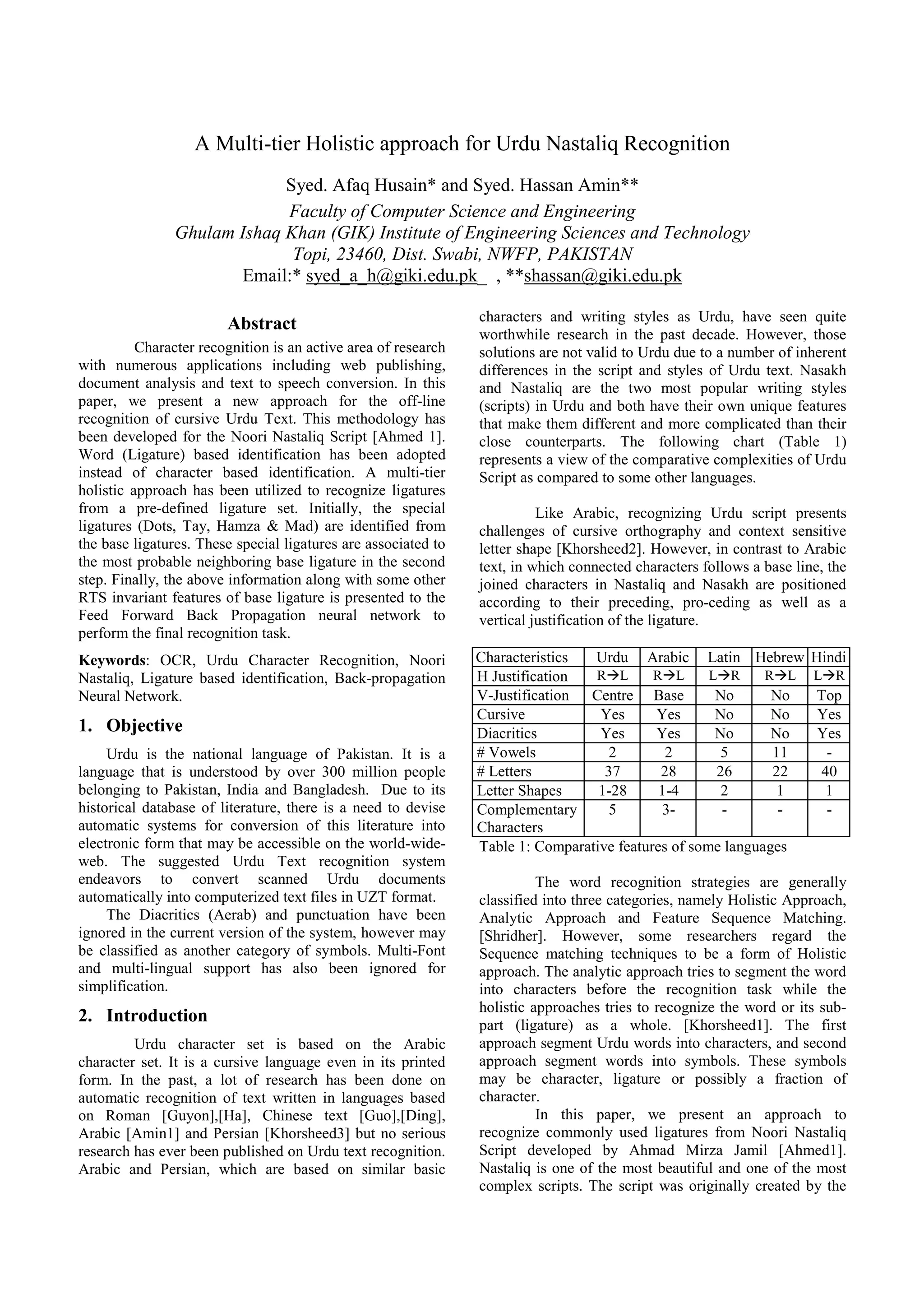 This paper presents a new multi-tier holistic approach for recognizing Urdu text written in Nastaliq script. It first identifies special ligatures like dots, tay, hamza and mad from base ligatures. It then associates the special ligatures with neighboring base ligatures. Features are extracted from the ligatures and special ligature-base ligature associations. These features are input to a neural network that recognizes the ligatures in three steps: 1) identifying special ligatures, 2) associating them with base ligatures, and 3) recognizing the base ligatures. The system was tested on 200 ligatures with 100% accuracy for ligatures in its training set and closest match classification for new ligatures.