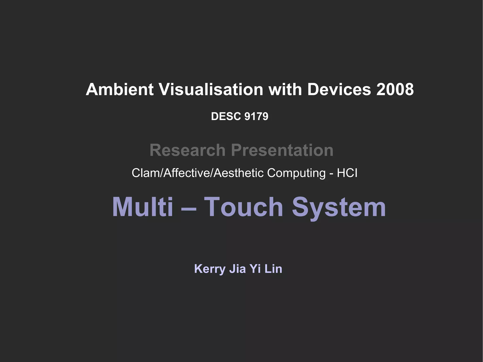 The document summarizes research on several multi-touch systems including Jeff Han's FTIR tabletop, ThinSight, and direct-touch tabletop designs. It describes the contributions of each system, such as Han's use of acrylic as an inexpensive medium and ThinSight's thin form factor. It also discusses the advantages and disadvantages of different approaches as well as research on evaluating direct-touch tabletop interfaces and interaction techniques.
