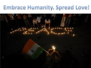 Today Mumbai experienced an attack similar to what New York experienced in the past. We as Indians must stand united, respect each other, take pride in our identity, and forgive transgressions. While staying silent in the face of adversity, we must work to uphold the ideals of our nation and its founding leaders. We do this to honor the innocent lives lost in such attacks, and to maintain the integrity that defines the spirit of India.