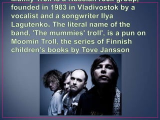 The document discusses the Russian rock band Nakhimov Naval College and their recent activities. It mentions that in late January 2013, the band stayed in Vladivostok where they filmed a music video for their new song "The Fourth Trolley" from their upcoming summer album. While filming the video in Vladivostok, the band's lead singer Ilya Lagutenko met with the Mayor of Vladivostok and was given an award for promoting the city in Russia and worldwide. Traffic was blocked for the filming of the music video on Ocean Avenue in Vladivostok. The premiere of "The Fourth Trolley" music video was in March on the Chart Dozen music chart.