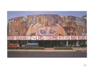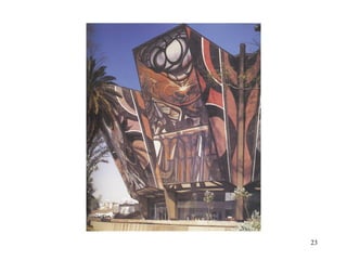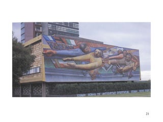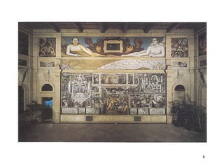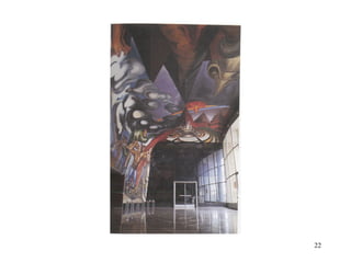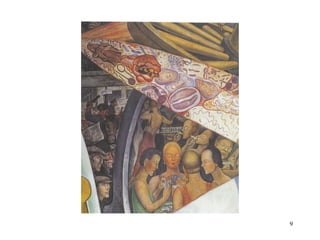 The document provides portraits of three prominent Mexican muralists from the early-to-mid 20th century: Diego Rivera, José Clemente Orozco, and David Alfaro Siqueiros. Rivera's portrait was painted by his wife Frida Kahlo in 1937. Orozco's portrait was taken by photographer Edward Weston in 1930. Siqueiros' self-portrait dates to 1945.