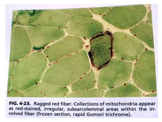 - The document outlines proper techniques for obtaining and preparing muscle biopsy specimens to ensure representative samples for analysis.