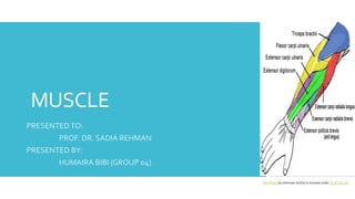The document provides an overview of the muscular system, detailing the types of muscles, particularly skeletal muscles, their structure, and the molecular mechanisms of contraction. It highlights that muscles are made up of protein filaments and are responsible for movement and support, with skeletal muscles being under voluntary control and striated in appearance. Additionally, it describes the formation of muscle fibers and the arrangement of filaments within muscle cells, essential for muscle contraction.