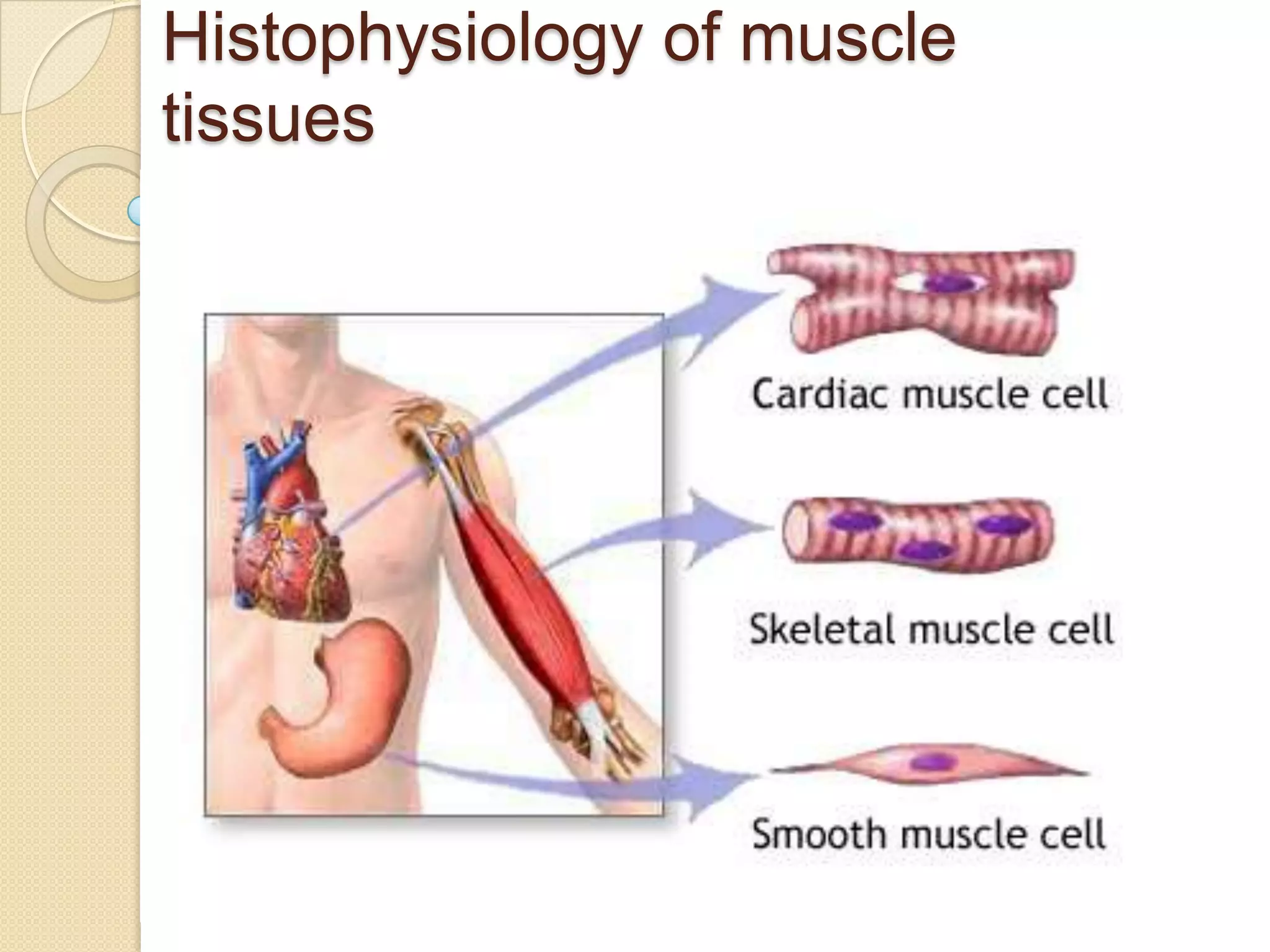 This document provides an overview of muscle tissue histophysiology. It discusses the structural unit of muscle tissue as muscle fibers. It describes the organization of skeletal muscles into myofibrils, sarcomeres, and myofilaments. It explains the sliding filament theory of muscle contraction and how calcium targets activate myofilament sliding. It also discusses dystrophin's role in muscle fiber stability and protection from contraction damage. Smooth muscle tissue types and their roles in organs like the GI tract and blood vessels are outlined. The molecular organization of filaments and caveolae structures in smooth muscle are briefly touched on.