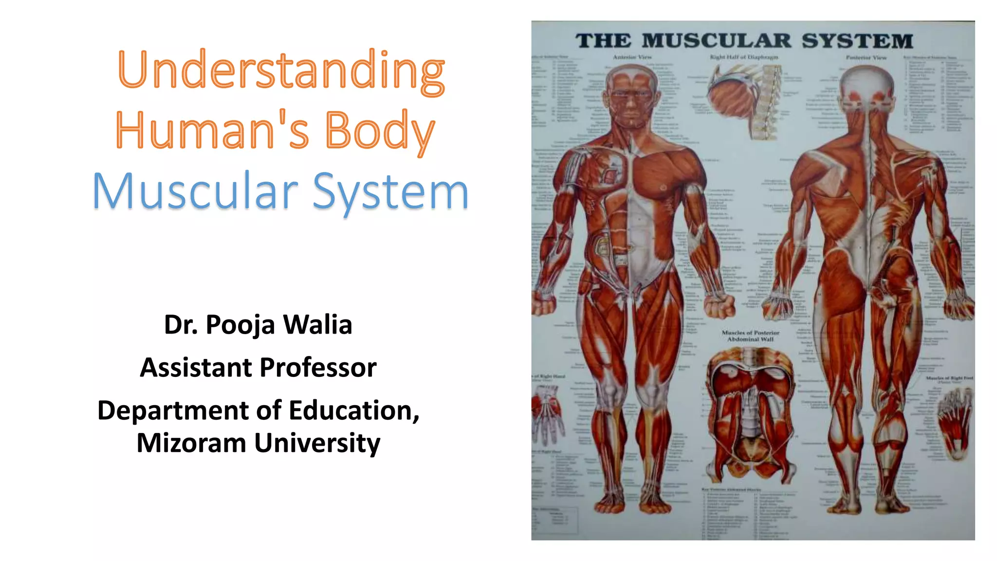 The muscular system is composed of three types of muscles - skeletal, smooth, and cardiac muscles. Skeletal muscles are attached to bones and control voluntary movement. Smooth muscles are found in internal organs and blood vessels and contract involuntarily. Cardiac muscle makes up the heart and contracts rhythmically and involuntarily. The main functions of muscles are contraction to enable movement and maintain posture, joint stability, and heat production.
