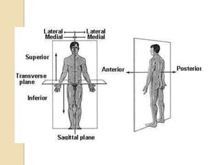 This document provides an overview of the musculoskeletal system, including the skeletal and muscular systems. It describes the main bone types and classifications, joints, movements, and muscle contractions. Key terms are defined such as anatomical directions, bone functions, and the differences between skeletal muscle fiber types.