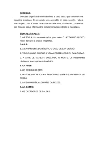 seccións temáticas. O percorrido será accesible en cada sección. Haberá
