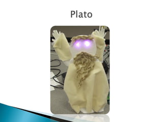 The document outlines plans for two interdisciplinary projects involving robots during the 2010-2011 school year. For the first project, students from various classes would work together to create robotic characters from ancient civilizations and have them narrate their lives. For the second project, an 11th grade English class would create a robotic rendition of a literary work by Edgar Allan Poe and be graded on storytelling, robot construction, expression, scenery, and collaboration.