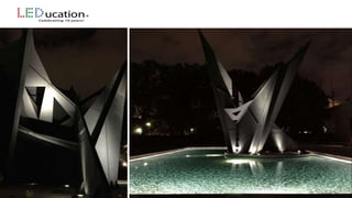 This document provides a summary of an AIA continuing education presentation on designing with LED lighting. It discusses key characteristics to consider when selecting LED luminaires such as color temperature, color rendering and dimming capabilities. It also reviews challenges of LED lighting such as heat management and product quality issues. The presentation includes case studies of LED lighting installations at the National Museum of American History and for a Calder sculpture. It concludes that specifications should require LED product information to ensure quality of light and components.