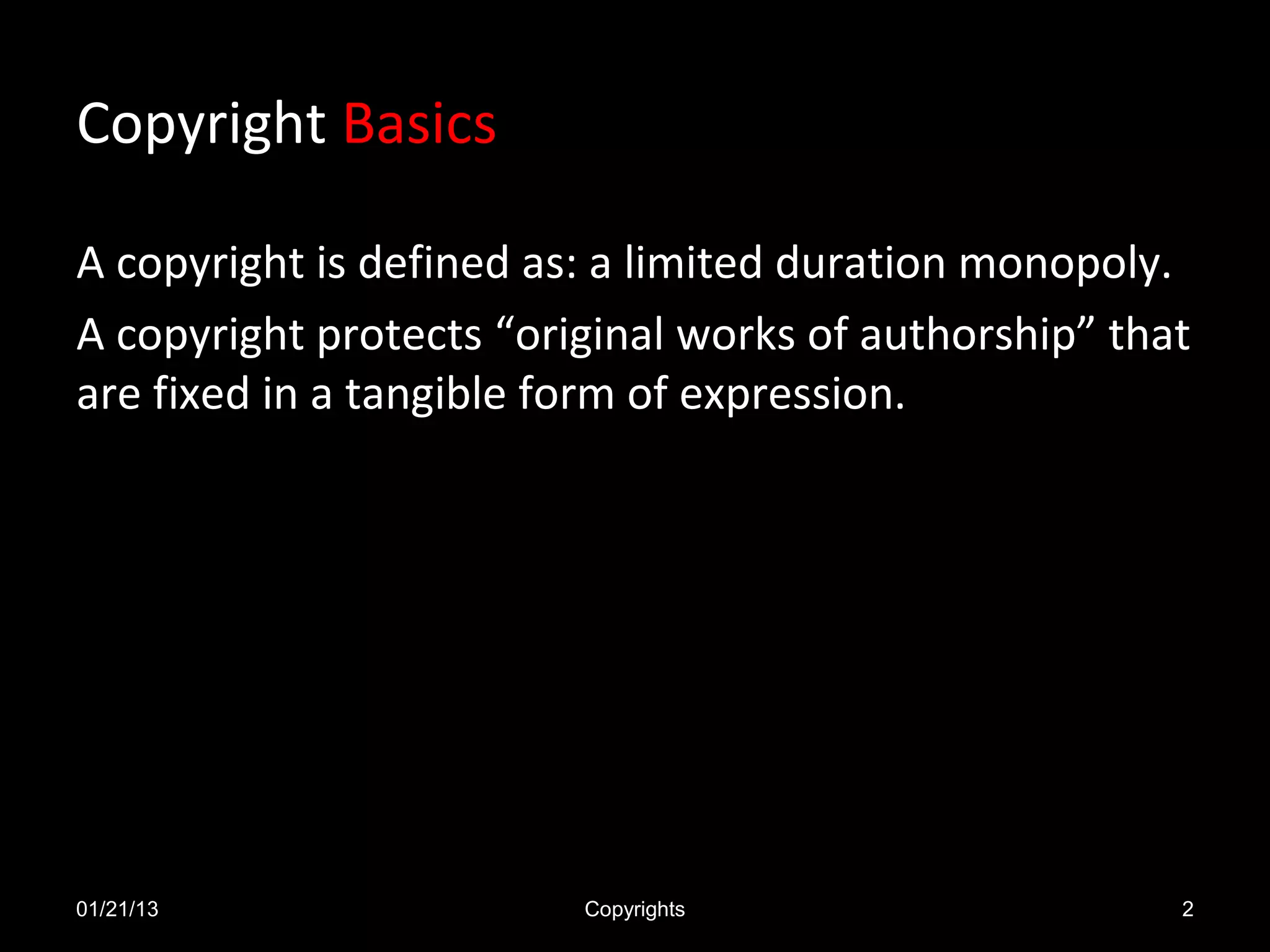 This document discusses copyright basics, including that a copyright protects original works of authorship fixed in a tangible form and lasts for the life of the author plus 70 years. It outlines various copyrightable works like music, literature, movies and explains the copyright notice and registration process. The document also covers copyright rights, compulsory licenses, mechanical licenses, regaining copyrights, and works entering the public domain.