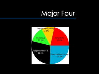 Music listening preferences can provide insight into a person's interests and personality. Record labels come in different sizes, from major international corporations to smaller independent labels. Major labels promote and distribute music on a large scale, while independent labels have less financial resources but similar goals of producing and promoting music.