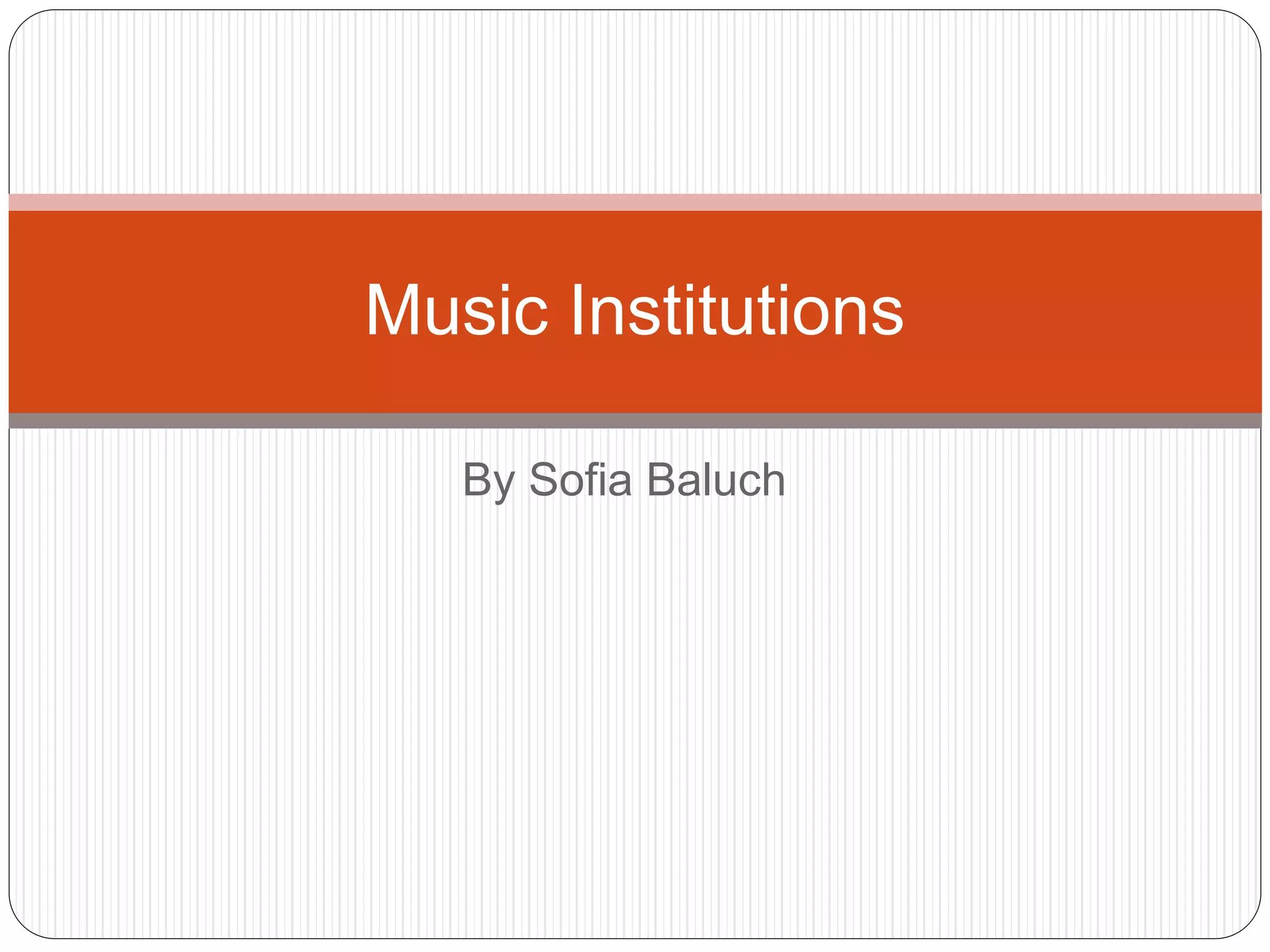 The document discusses four major music institutions - Universal Music Group, Sony Music Entertainment, Warner Music Group, and EMI Music Publishing. It provides details on when each was founded, their current size and revenue, sub-labels, and examples of popular artists signed to each. Universal is the largest, founded in 1934, with over $6.5 billion in revenue and artists like Taylor Swift and U2. Sony is second largest, founded in 1929, with labels like Columbia and Epic and artists like Michael Jackson and Alicia Keys. Warner is third largest and founded in 1958, home to artists like Coldplay, Ed Sheeran, and Prince. EMI was one of the "big four" labels until being acquired in 2012