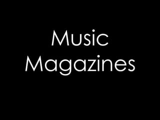 The document provides information about the covers and contents of four different music magazines from different genres and time periods: