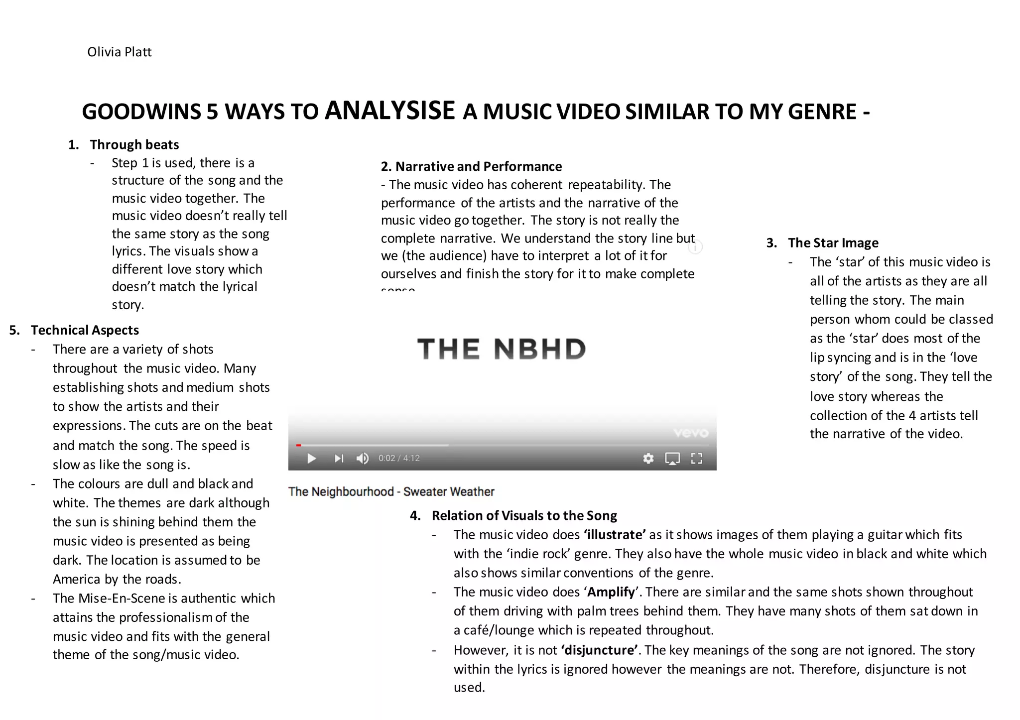 1) The relationship between the beats of the song and the structure of the music video. While the visuals tell a different love story than the lyrics.