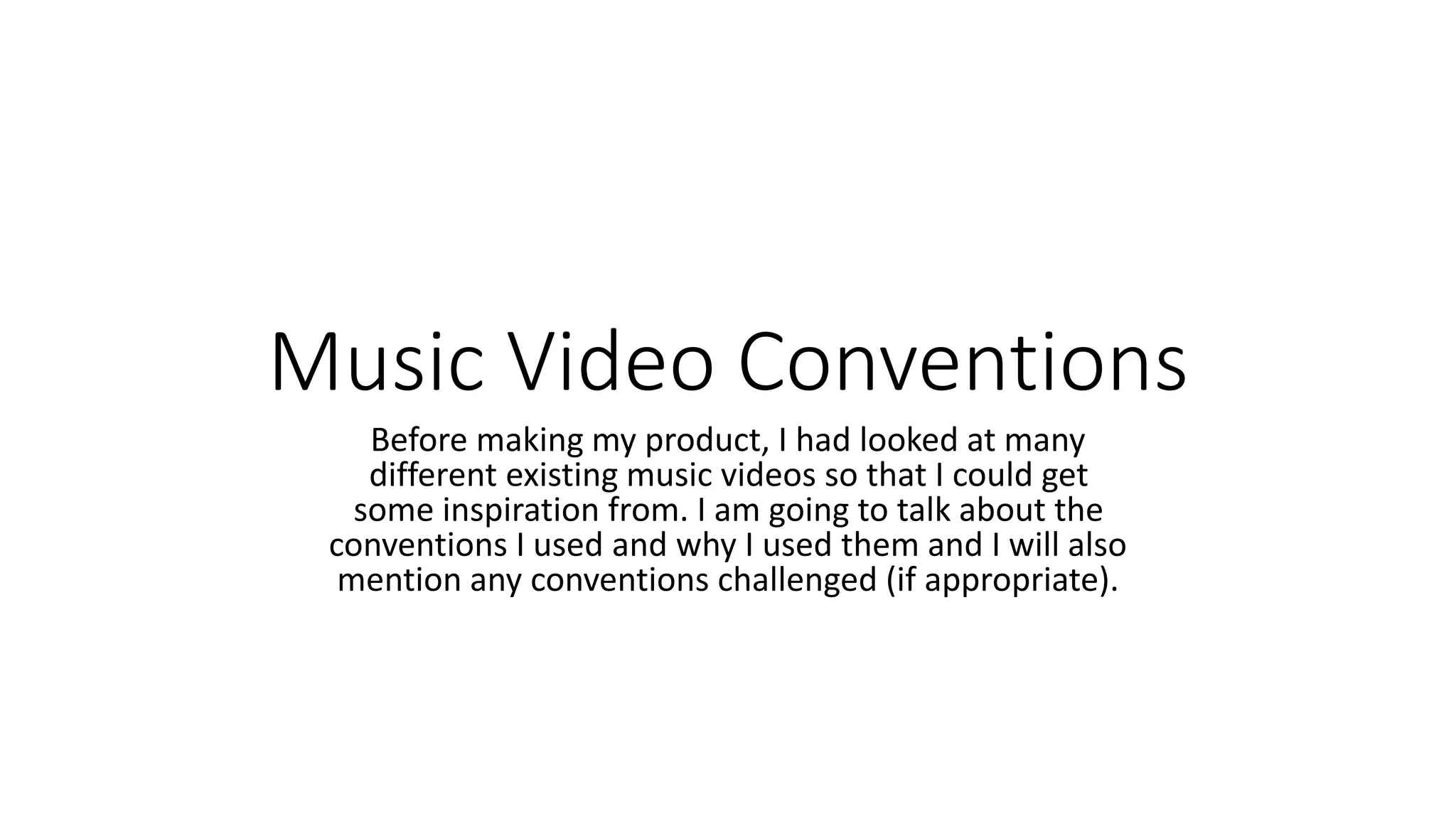 The document discusses various conventions used in music videos that the author referenced when creating their own music video. These conventions include using photographs to portray a narrative, including both narrative and performance elements, employing editing techniques like dissolves and reverse speed, distinguishing costumes between narrative and performance, incorporating choreography, considering lighting choices, editing to the beat, and utilizing different camera shots. The author analyzed existing popular music videos that demonstrated these conventions in order to create a professional-looking final product that would appeal to audiences and meet expectations.