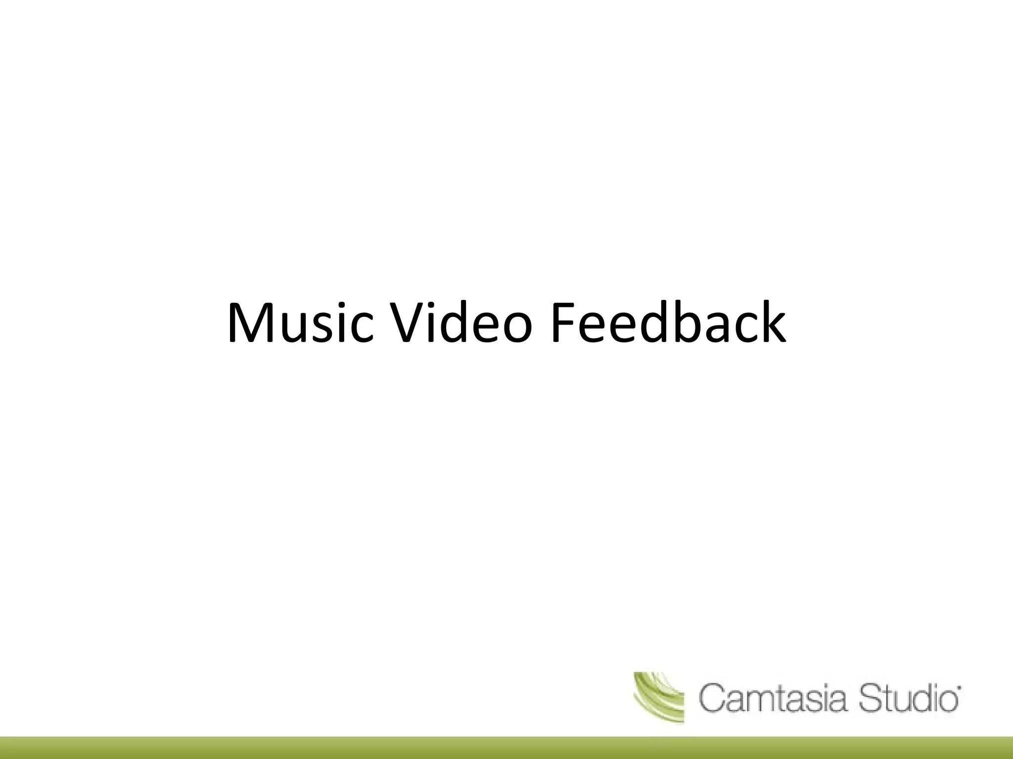 The music video feedback noted that good transitions, accurate lip syncing, varied locations and costumes, and special effects were positives. Areas for improvement included using a tripod more for steadier shots, capturing more varied shots, ensuring all participants stay focused during filming as some unplanned moments occurred, and utilizing additional locations.