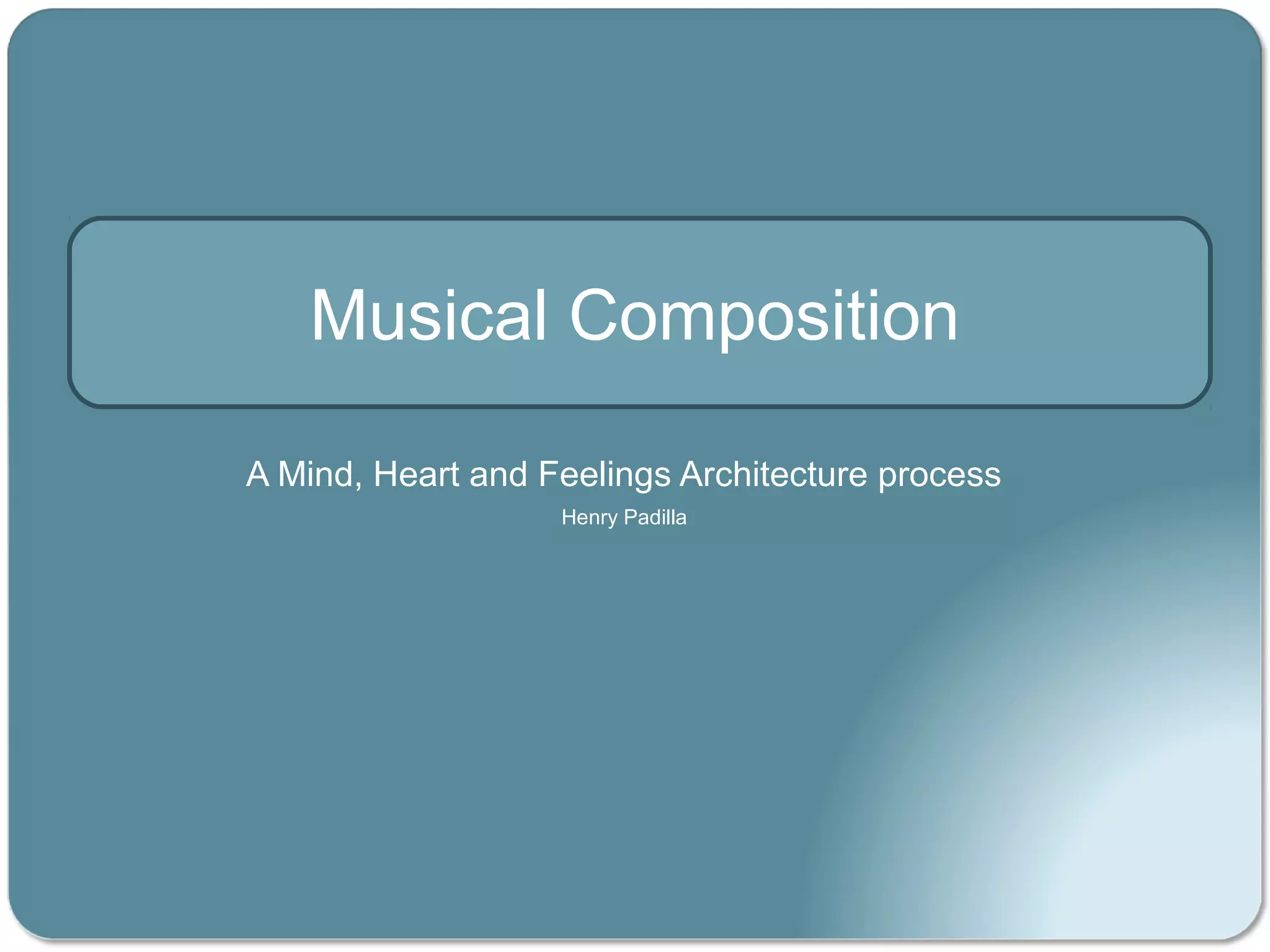 Musical composition involves arranging sounds to create an effect. While it involves mathematics, music is not an exact science as musical sense was created as a gift that must be developed. Music does not have limitations and has power to evoke the human essence. The architecture process of composition involves questions of whether the music is spontaneous, inspired, or elaborated and projecting the emotions one wants to transmit so that the end justifies the process. Yanni is an example composer who transmits emotion through complex concerts to appreciate simplicity.