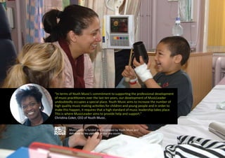 MusicLeader aims to raise the quality of music leadership in the UK by providing training, resources, and support to music practitioners. Funded by Youth Music, MusicLeader operates a national network that offers information, advice, guidance, and professional development opportunities to over 16,000 individuals and organizations. Its goals are to equip music leaders with the skills needed by employers and advocate for the importance of investing in music leadership.