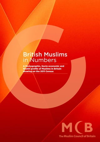 This report analyzes 2011 UK Census data on the Muslim population in Britain. It is divided into sections on demographic details, civic issues, inequalities, labor market/education issues. Some key findings include: