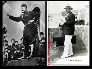 This document provides sources about Benito Mussolini and fascism in Italy but does not appear to be a biography of Mussolini. It includes Mussolini's name and lists 4 sources - 2 books in Italian on fascism in Italy, Mussolini and fascism, and fascism and Italian society as well as 2 online encyclopedia entries about Mussolini and fascism but indicates that the provided information is not a biography of Mussolini.