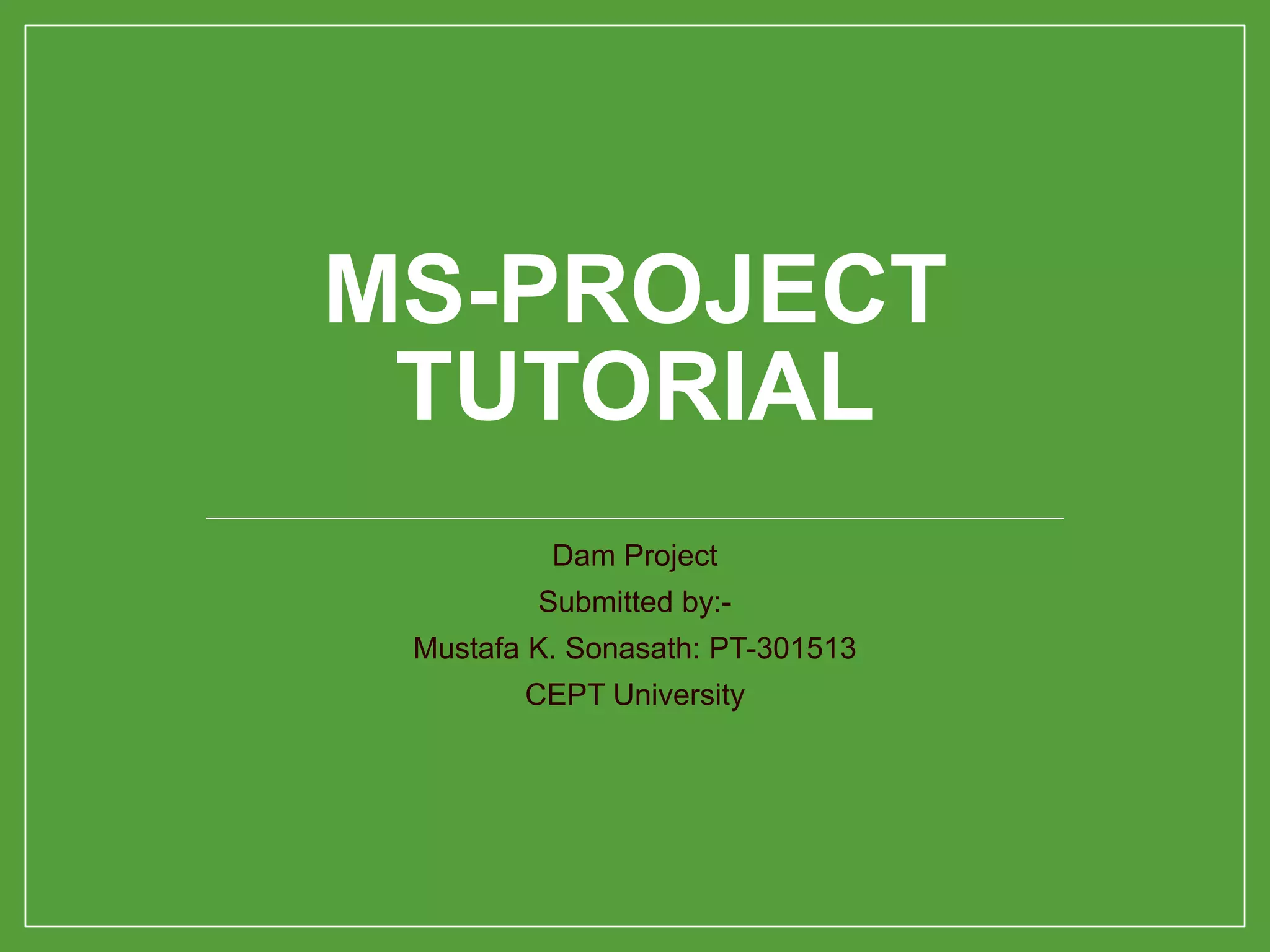The document is a tutorial on using MS Project for managing a dam project, detailing steps for creating project lists, defining work breakdown structures (WBS), assigning tasks and resources, and customizing features like Gantt charts and calendars. It also covers advanced topics such as resource leveling, filtering, recording macros, and managing multiple projects using a resource pool. Key aspects include assigning responsibilities, tracking progress through earned value analysis, and generating reports.